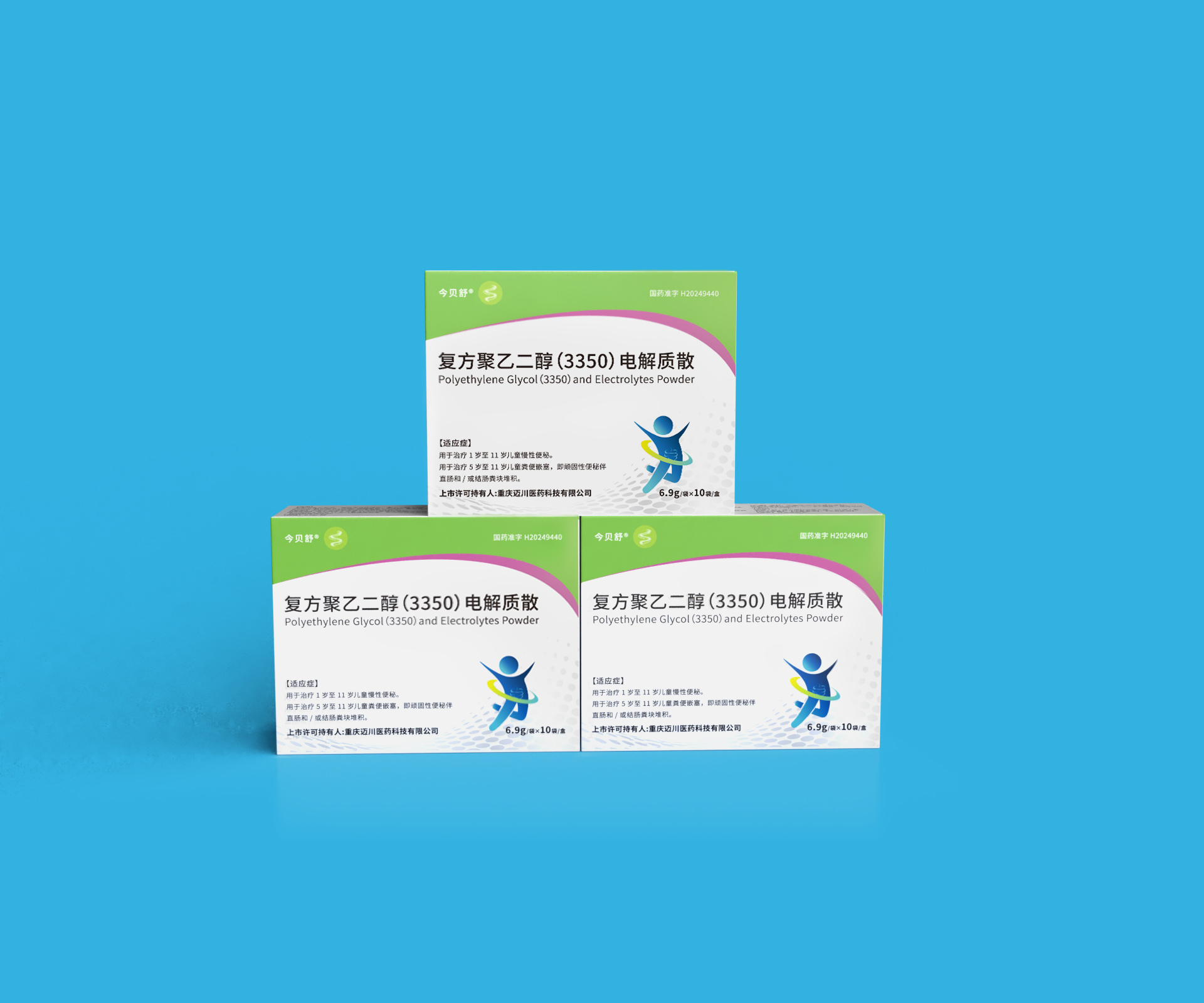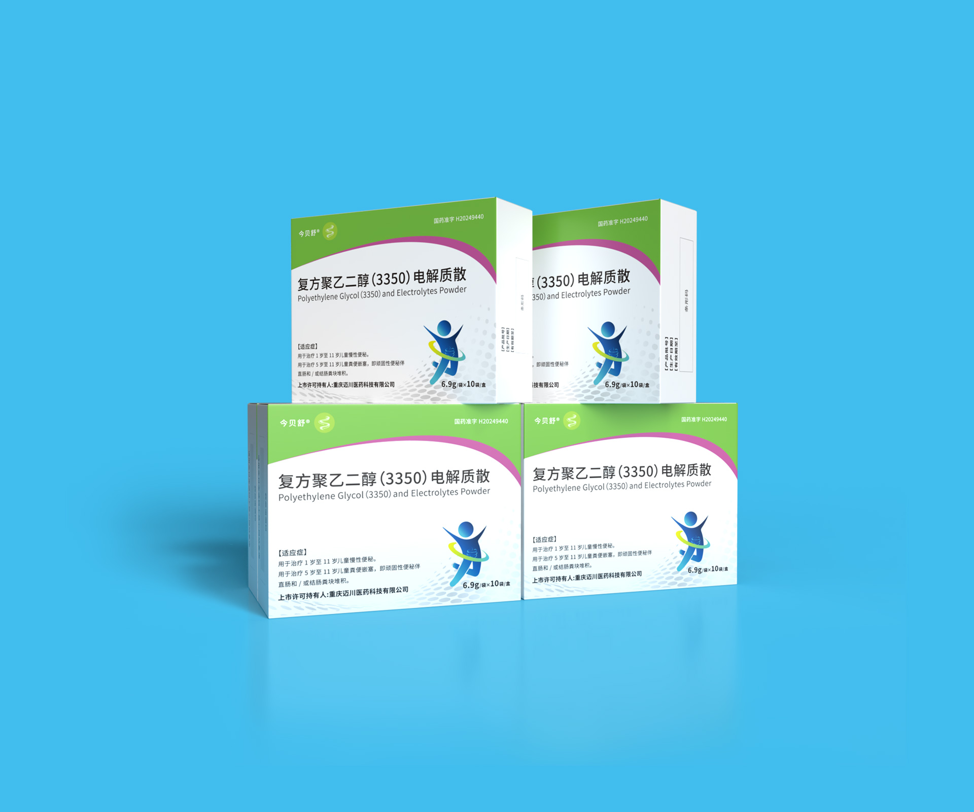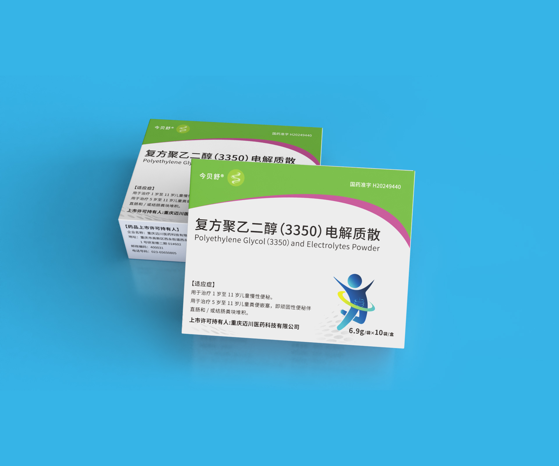 通过石特大健康的专业包装设计,重庆迈川医药科技有限公司的复方聚乙二醇(3350)电解质散及乳果糖口服溶液产品获得了: