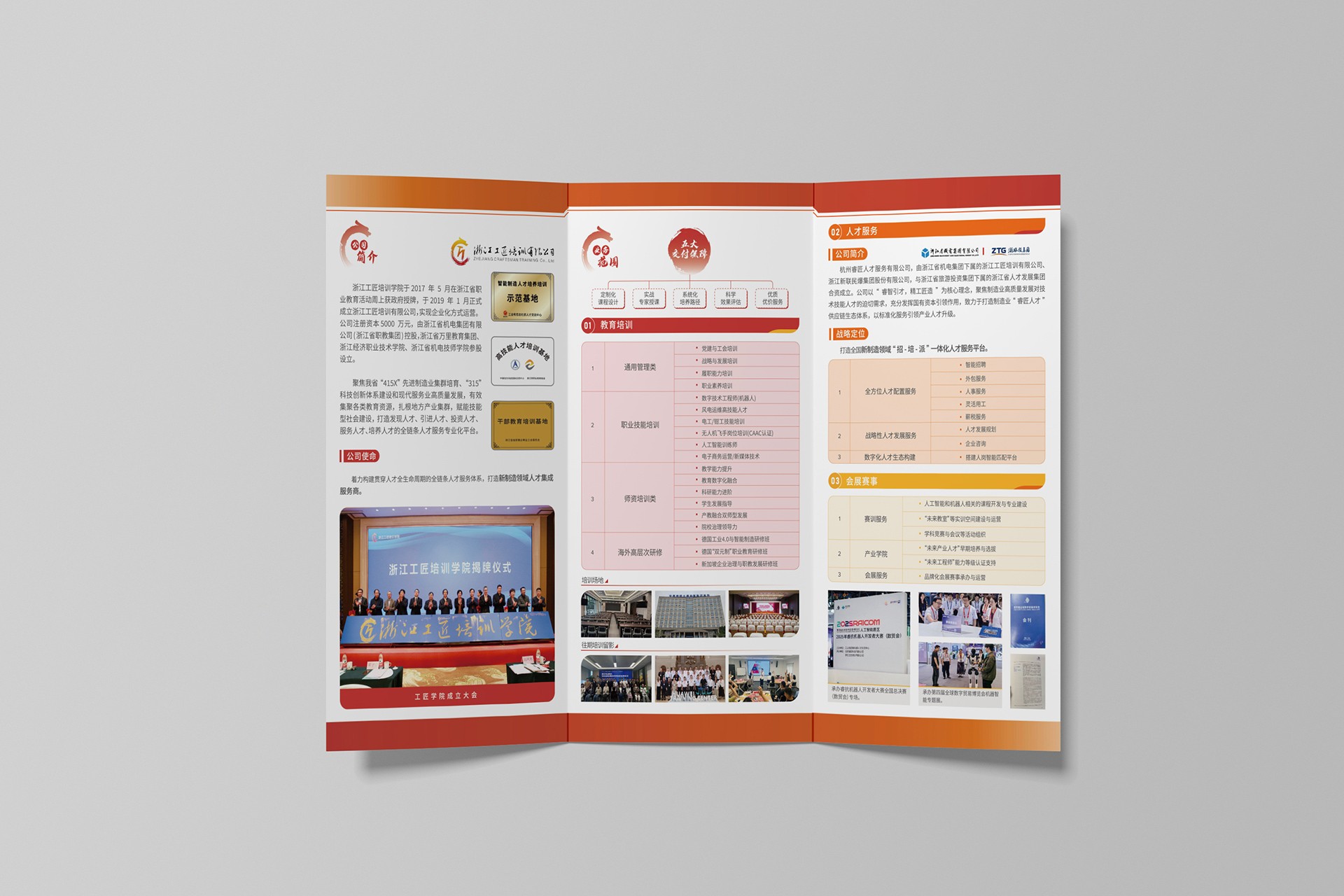 本项目是杭州石特广告为浙江工匠培训有限公司量身定制的招生宣传三折页设计制作项目。面对竞争日益激烈的职业技能培训市场,工匠培训需要一套能够快速触达目标学员、清晰传达课程价值、并激发报名意愿的高效宣传物料。石特广告深入理解职业培训行业特性,以“技能成就未来”为核心传播理念,通过精准的内容提炼、直观的利益呈现和人性化的设计体验,将一份简单的三折页打造为集课程推介、品牌展示与招生转化于一体的精准营销工具,助力客户在招生季脱颖而出。